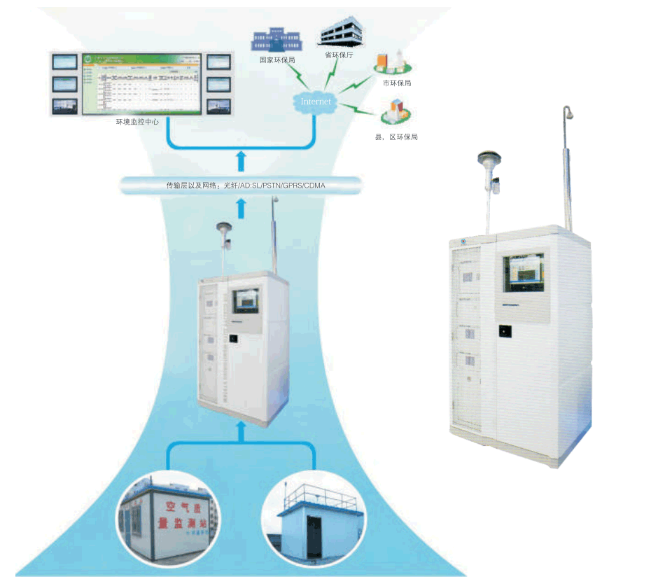 支持(chi)光纖/以(yi)太網/ADSL/3G/4G/GPRS等通訊方(fang)式,能(neng)與各級環保管理平(ping)臺(tai)進(jin)行數據交換,支持(chi)遠程(cheng)參(can)數和(he)反控(kong)設(she)置。