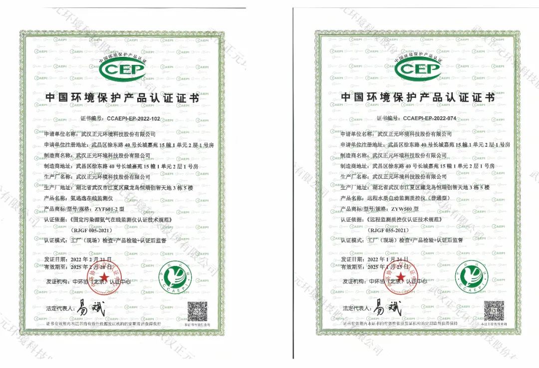 近(jin)日,武(wu)漢正(zheng)元(yuan)環境(jing)科技股(gu)份有限公司(以(yi)下簡稱:正(zheng)元(yuan)環境(jing))收到由中(zhong)環協(北京)認(ren)證(zheng)(zheng)中(zhong)心認(ren)證(zheng)(zheng)并頒發的(de)遠程水質自動(dong)監測(ce)(ce)(ce)質控儀(yi)和(he)氨逃逸在(zai)線監測(ce)(ce)(ce)儀(yi)《中(zhong)國環境(jing)保護產品認(ren)證(zheng)(zheng)證(zheng)(zheng)書(shu)》(即CCEP證(zheng)(zheng)書(shu))。這不僅證(zheng)(zheng)明了(le)正(zheng)元(yuan)環境(jing)在(zai)水質在(zai)線監測(ce)(ce)(ce)及(ji)煙氣在(zai)線監測(ce)(ce)(ce)產品的(de)綜合實力和(he)權威認(ren)可(ke),也(ye)為選(xuan)擇(ze)正(zheng)元(yuan)環境(jing)產品的(de)客戶(hu)提供了(le)可(ke)靠(kao)的(de)保障和(he)信任。
